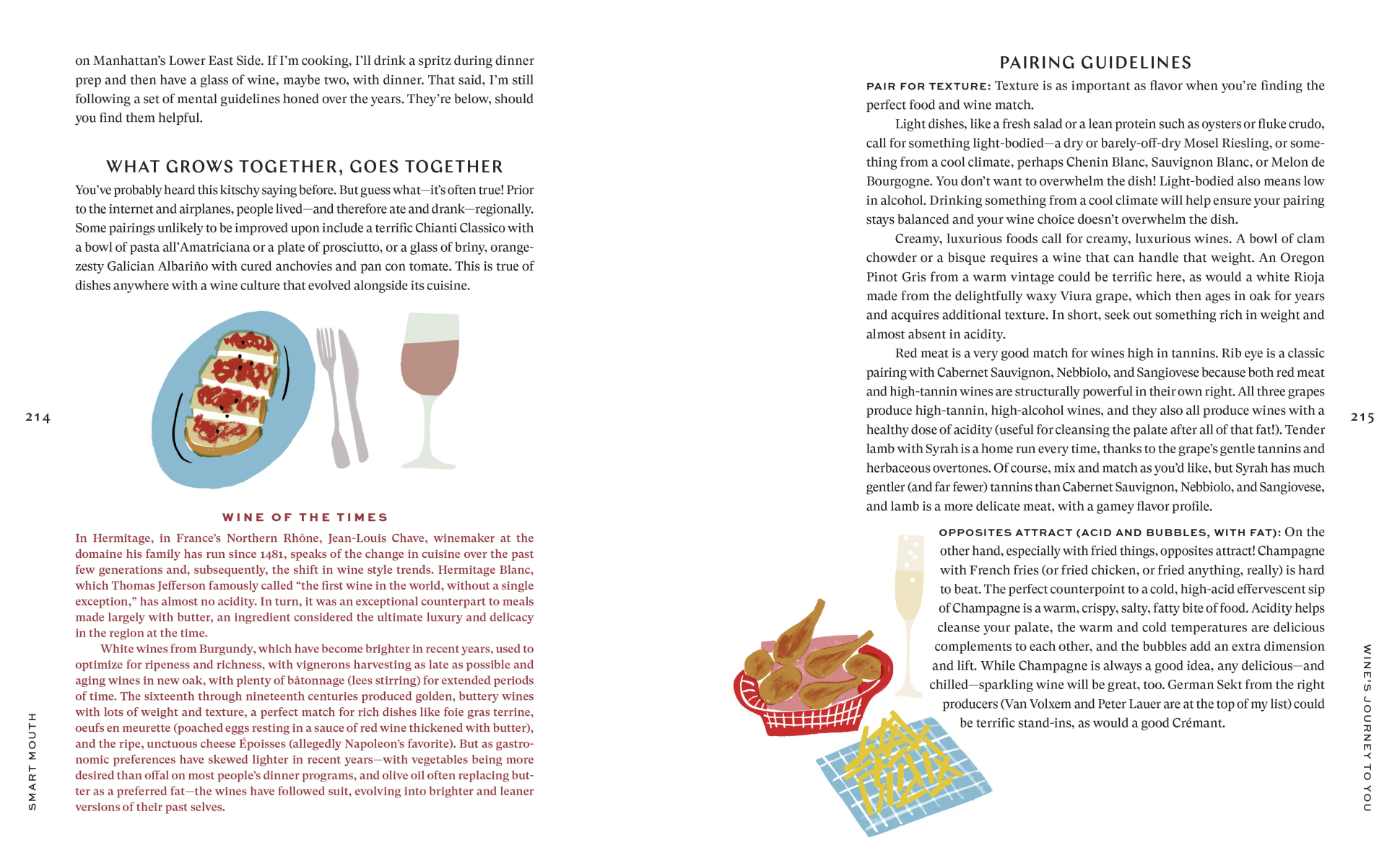 Full of practical advice on understanding your beverage arsenal, historical tidbits that make the world of wine make more sense, and illustrations and infographs, Smart Mouth gives you permission to feel smart about wine and then go forth with confidence, drinking what you love. You'll know what wine tools you actually need and what to get instead of Champagne when you're hosting on a budget.